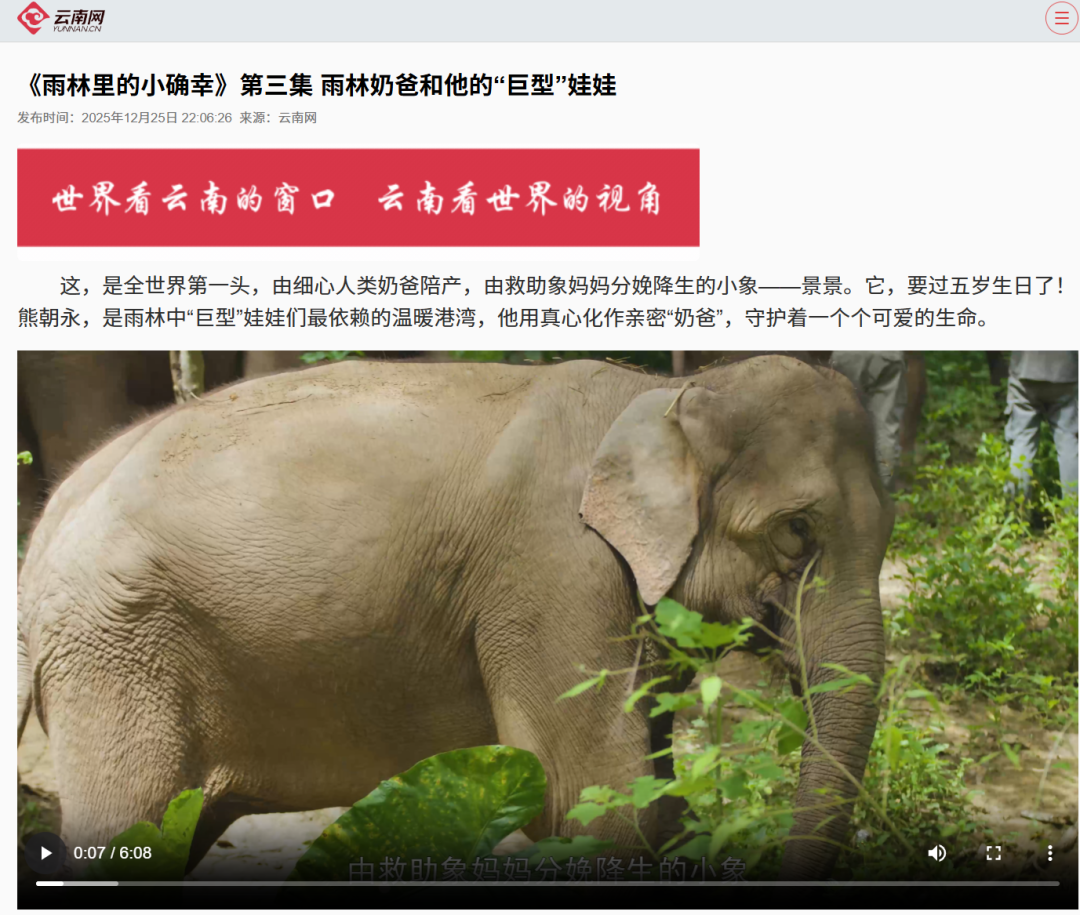 第三集雨林奶爸和他的“巨型”娃娃:这,是全世界第一头,由细心人类奶爸陪产,由救助象妈妈分娩降生的小象——景景。它,要过五岁生日了!熊朝永,是雨林中 “巨型” 娃娃们最依赖的温暖港湾,他用真心化作亲密 “奶爸”,守护着一个个可爱的生命。
