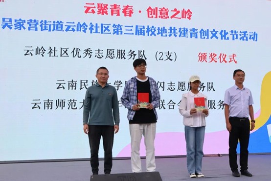 主办方为校地共建优秀服务团体、个人、社区优秀实习生及社区优秀自组织颁发证书,表彰校地共建中的先进力量。云南师范大学传媒学院党委书记毛志荣为优秀志愿服务队颁奖。