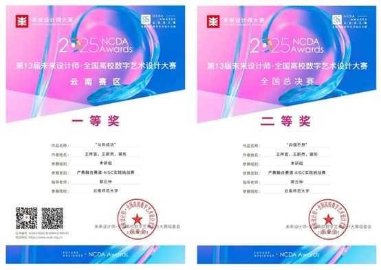 2025年11月15日至16日,第13届未来设计师·全国高校数字艺术设计大赛(NCDA)产教融合赛道AIGC实践挑战赛(本研组)全国总决赛在上海交通大学落下帷幕。传媒学院由郭云仲老师指导,2024级广播电视编导专业王梓宣、2024级播音与主持艺术专业王蔚然、2025级新闻与传播专业研究生裴彤组成的参赛团队凭借作品《自强不息》脱颖而出,斩获全国二等奖、云南省级一等奖的好成绩。