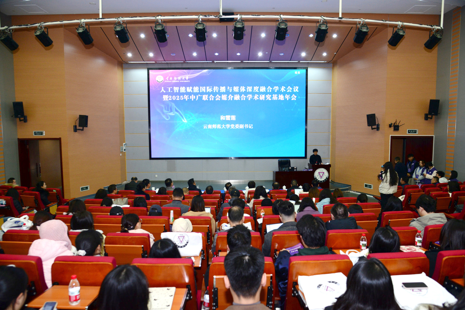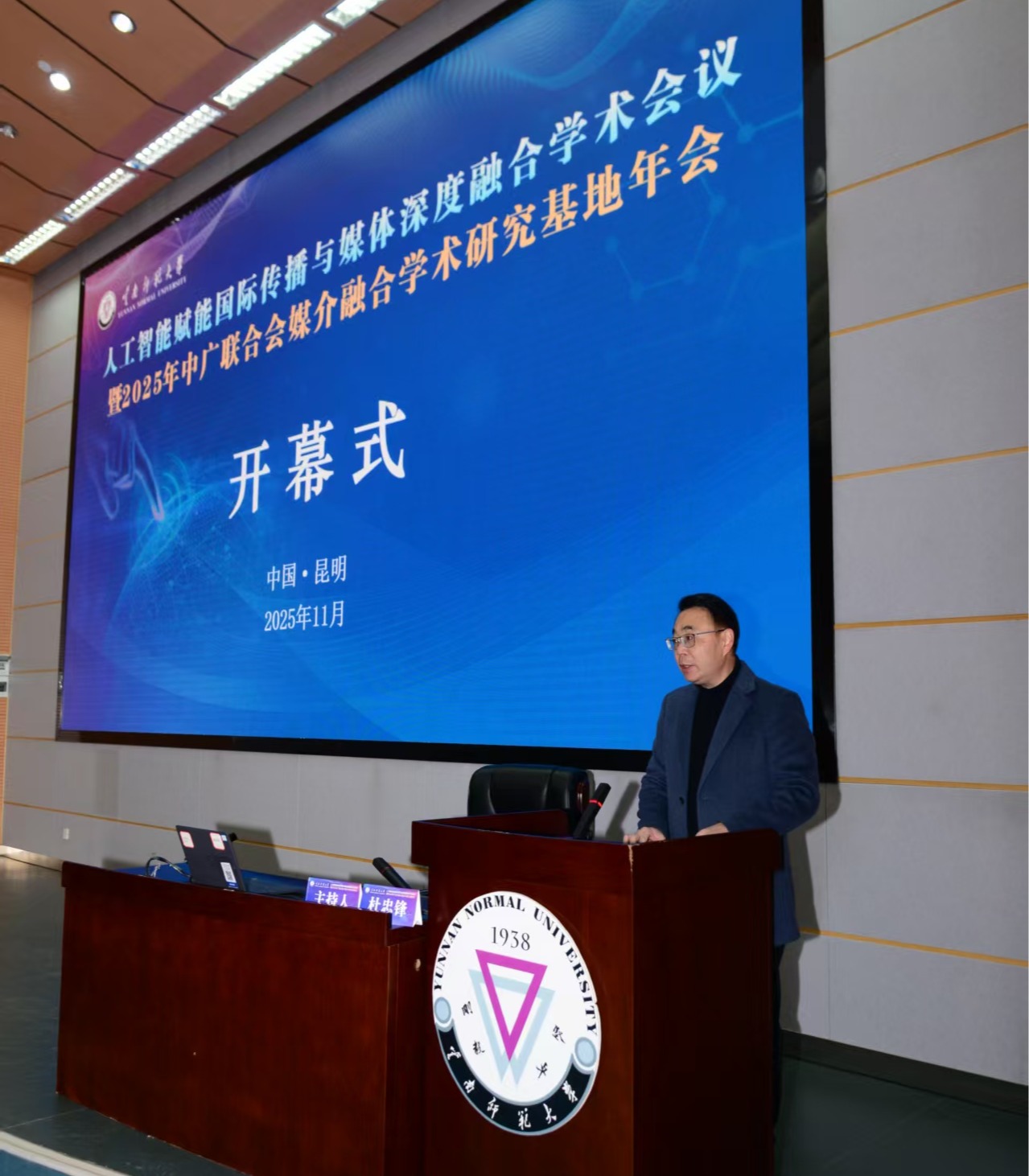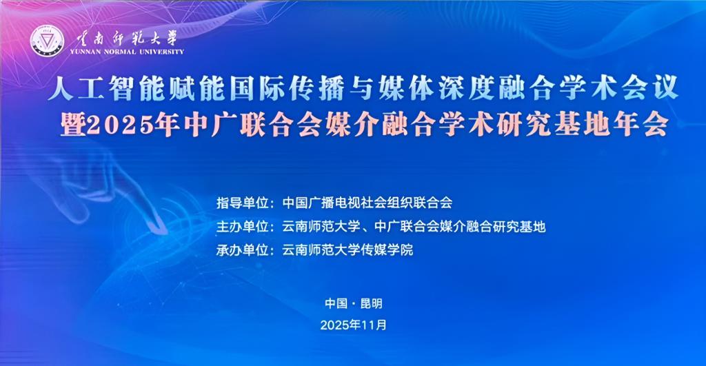 2025年11月29日,由云南师范大学与中国广播电视社会组织联合会媒介融合学术研究基地联合主办、云南师范大学传媒学院承办的 “人工智能赋能国际传播与媒体深度融合学术会议暨 2025 年中广联合会媒介融合学术研究基地年会”在昆明召开。云南师范大学党委副书记和雪莲、中国广播电视社会组织联合会媒介融合研究基地主任覃信刚、中共云南省委宣传部国际处处长江栎,来自学界的专家学者、业界骨干、30多所高校师生远道而来,共赴这场思想碰撞的学术之约。此次会议旨在研讨在全球化传播格局深刻调整、跨文化交流需求日益增长的时代背景下,借助人工智能技术破解国际传播中的“文化折扣”难题,构建更具亲和力与影响力的中国国际话语体系的重大课题。